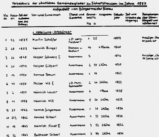 Am 1. Mai 1883 wurde der Ackermann Johannes Bierau zum Bürgermeister von Sichertshausen gewählt. Er war der Schwiegersohn vom zurückgetretenen Bürgermeister Johannes Stingel.